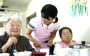 その日の献立から、料理の作り方や若い頃のエピソードを話してくださる方も多く、食事の時間は、利用者様とのコミュニケーションを図る大切な時間でもあります。